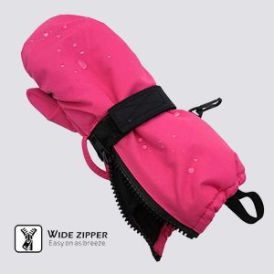 Kids Winter Ski Snow Mittens Waterproof Warm with Zipper for Toddler – Slim Fit For Skiing