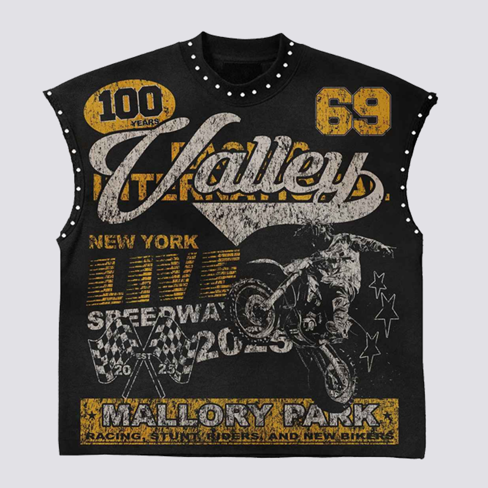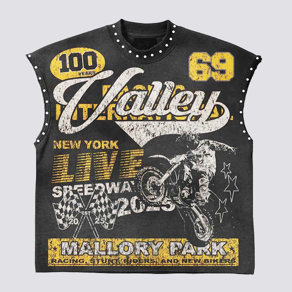 Knitted Oversized Sleeveless DTG Print & Rhinestone Boxy Streetwear Tank Top