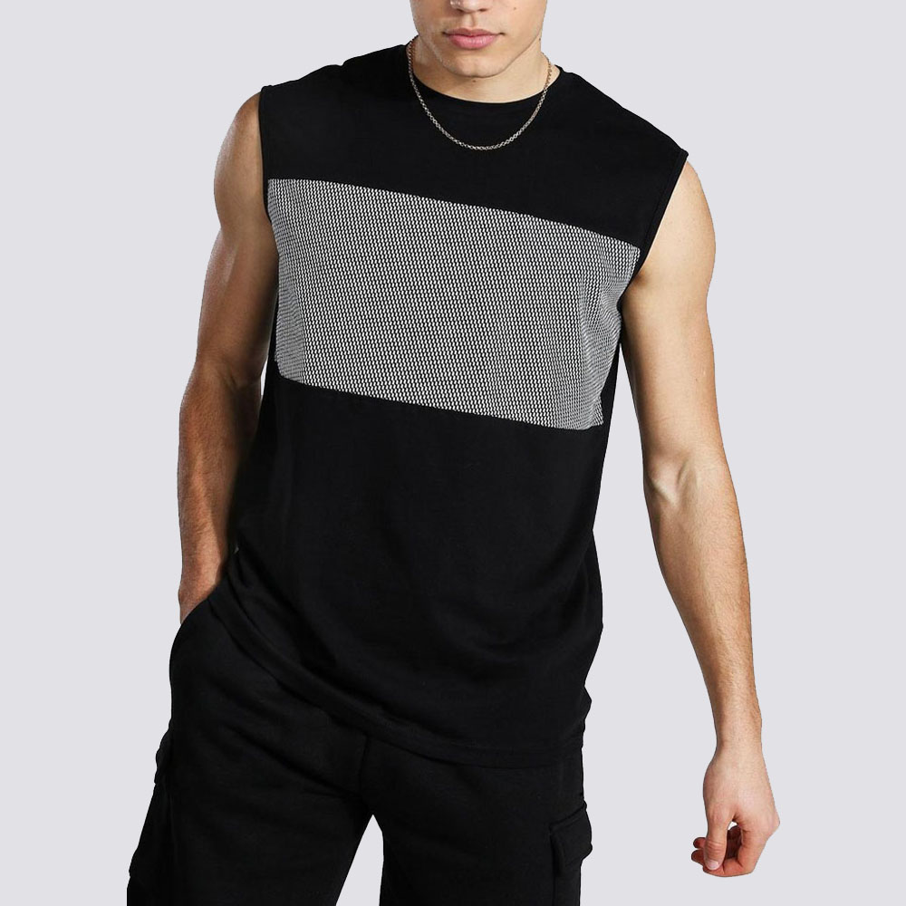 Patchwork Panel Drop Armhole Tank Men’s Workout Tee Sleeveless Gym Shirt