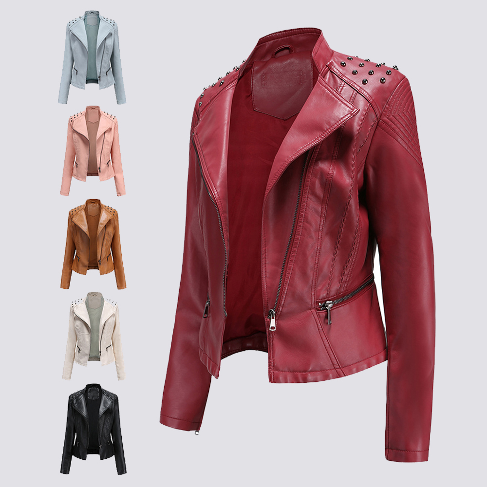 Women Faux Leather Jacket with Pockets Fur Lining Short Coat Slim Fit PU Outwear